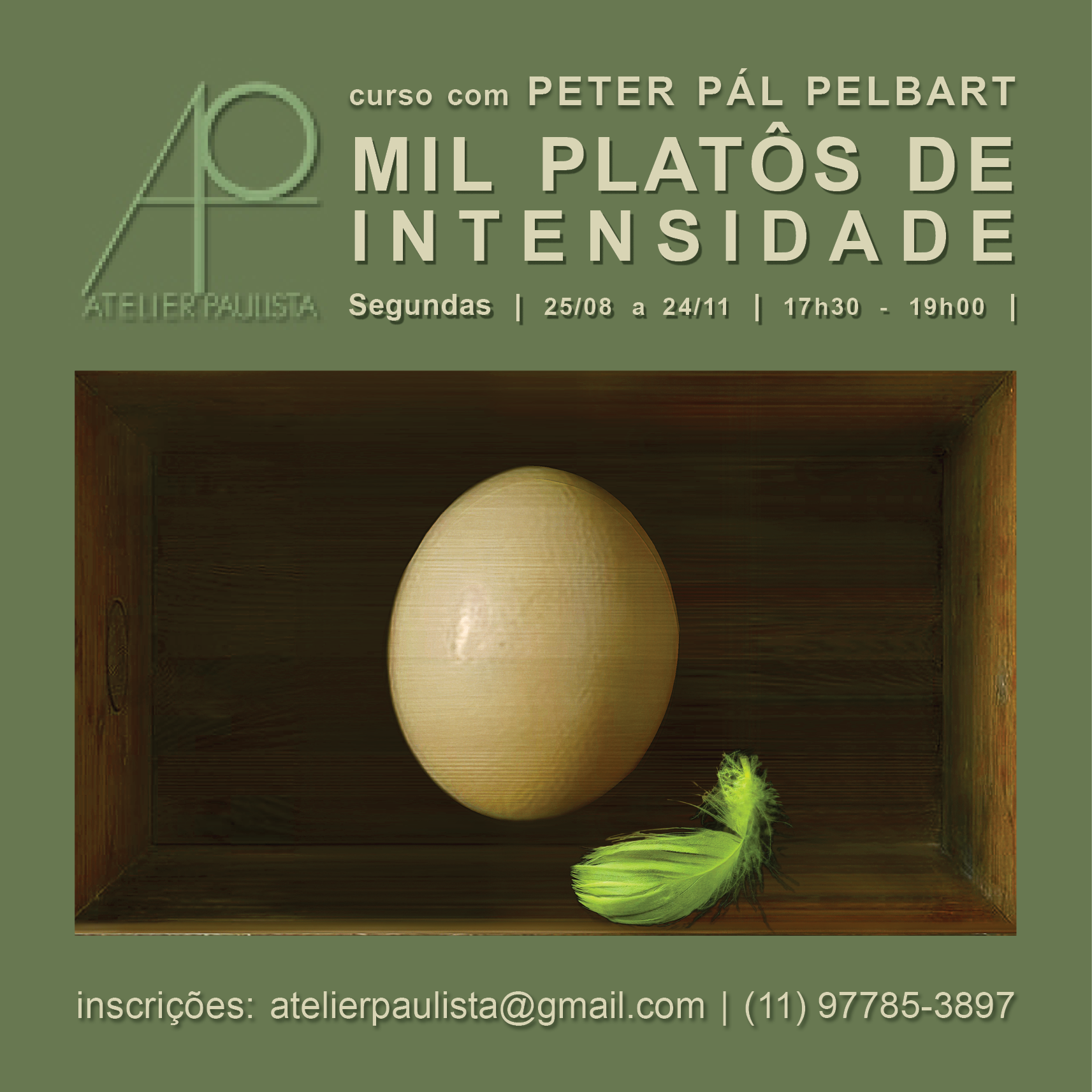 Para mais informações e inscrições: atelierpaulista@gmail.com ou 11 97785-3897 (WhatsApp)